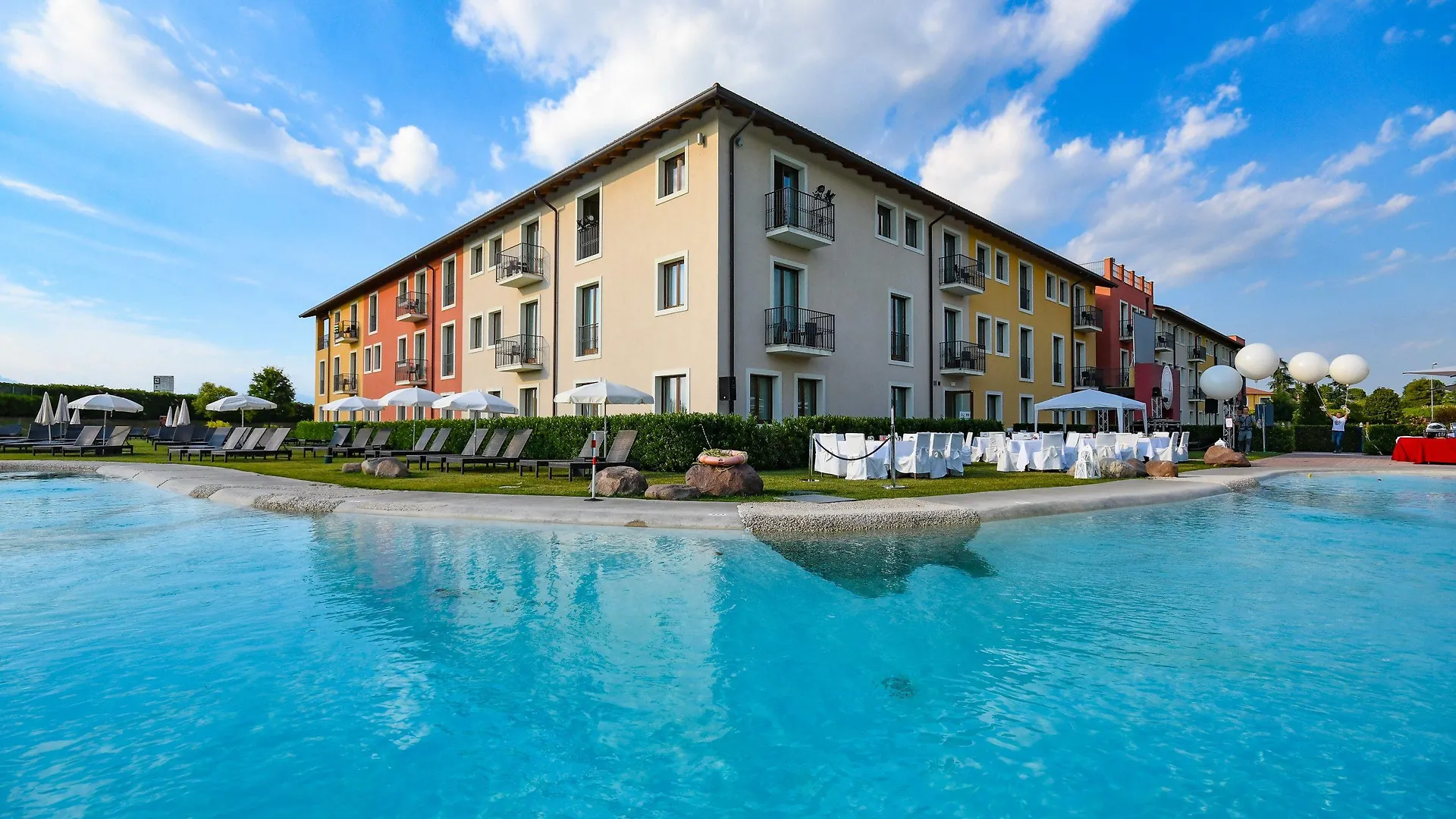 Hotel Parchi Del Garda Lazise ligt op 1 km van Pretpark Gardaland en beschikt over een seizoensgebonden buitenzwembad en een gemeenschappelijke salon. Fuga da Atlantide bevindt zich in de nabijheid van de accommodatie, naar Verona luchthaven is het circa 27 minuten rijden.